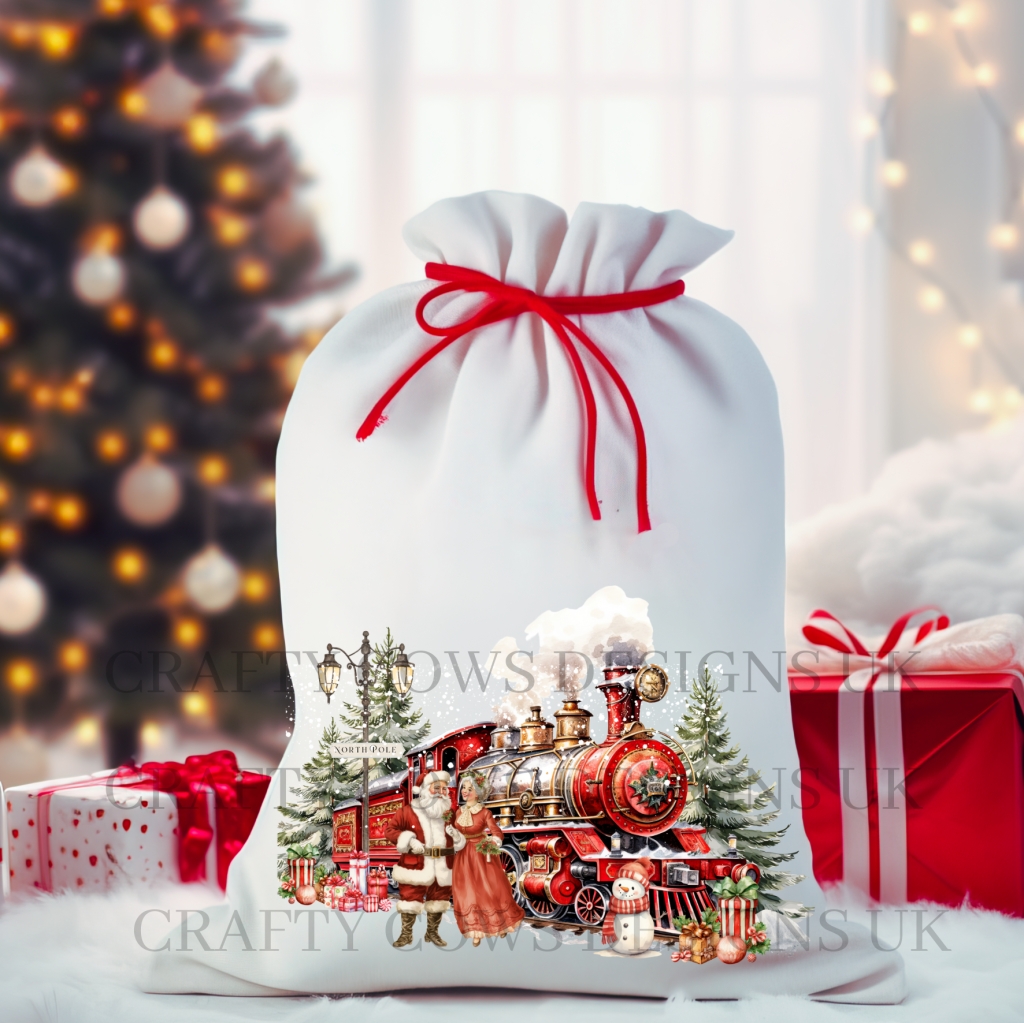 Transform your holiday outfits and decor with the North Pole Express Christmas Scene 20cm DTF transfer print! Give your clothing and fabrics a festive touch, and add a touch of magic to your Christmas stockings and sacks with the charming image of Santa and Mrs. Claus. The perfect way to bring the spirit of the North Pole into your home.