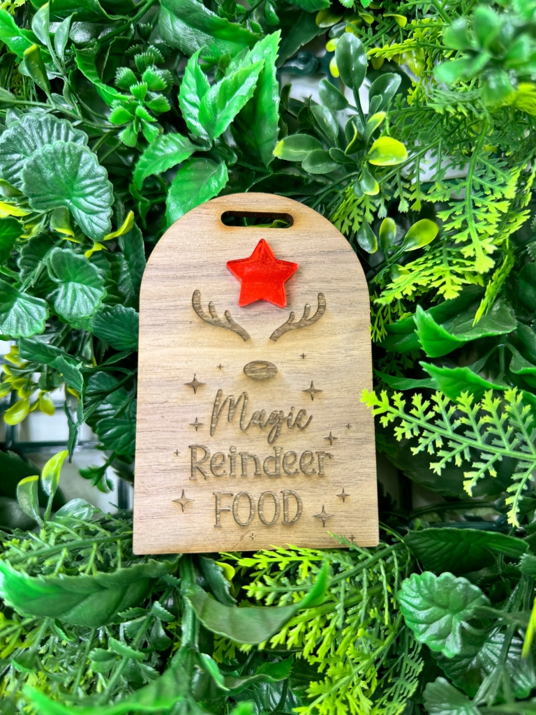 Spread the magic of the holidays with our customisable Magical Reindeer Food Tag! Perfect for decorating bags of reindeer food, this charming 4mm walnut acrylic tag features a colourful star, handpicked to match your liking. Share the joy with your loved ones and spark the imagination of your little ones with this festive and delightful addition to your holiday traditions. Measuring at 100mm x 50mm, it's the perfect size to stand out and add extra charm to your celebrations.