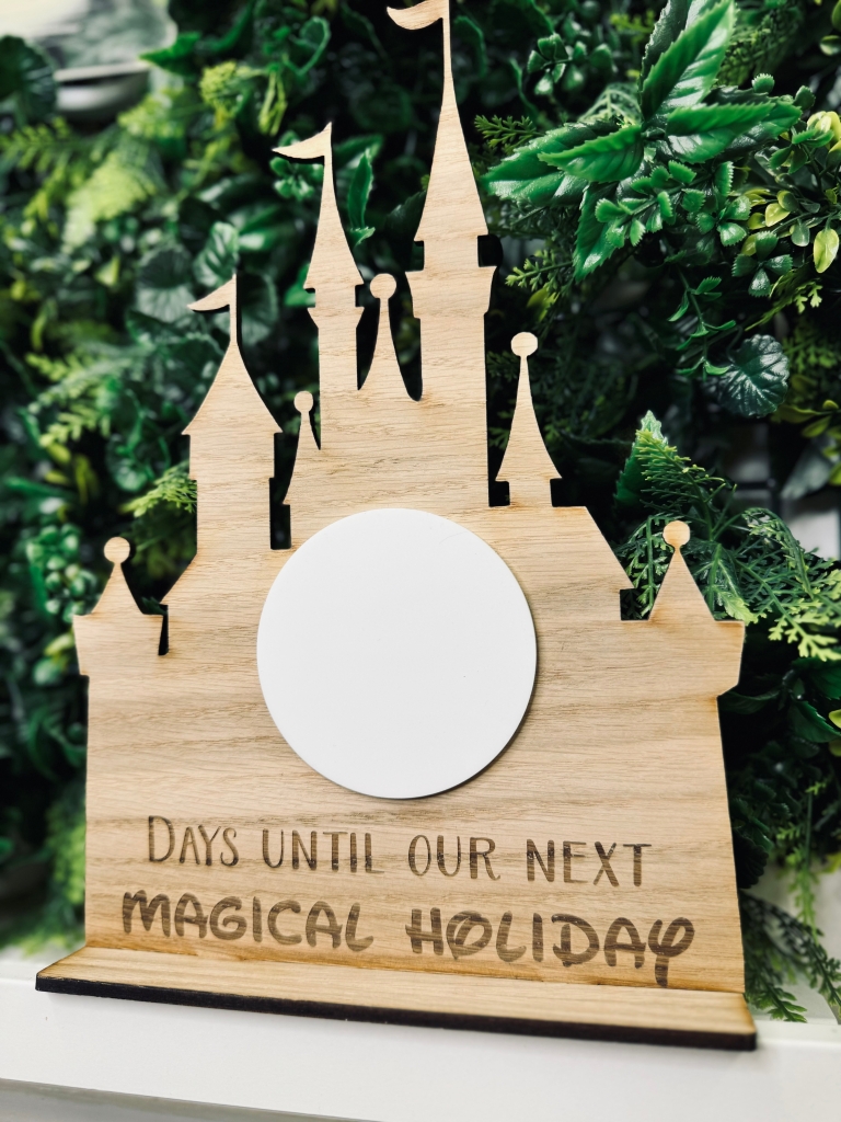 The Magical Holiday Countdown Board is the perfect way to count down the days to your next magical holiday! Made from 4mm oak veneer and featuring a wipeable whiteboard section for whiteboard pens, this freestanding board comes with a base. Assembling it is simple and easy, and you'll love using it year after year to build excitement for your upcoming trip!