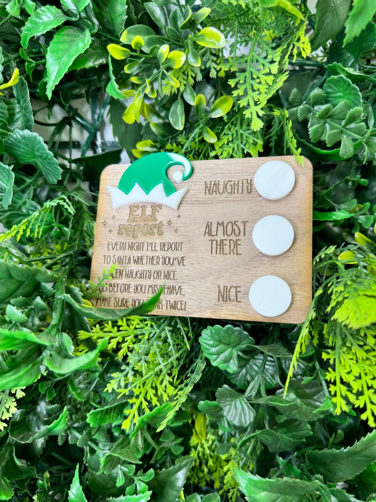Keep track of your elf's daily report with our Elf Report Walnut Veneer! Made with durable 4mm wood veneer and easy-to-clean sections, this report card will ensure your elf keeps you updated. Stay informed and in touch with the magic of Christmas!