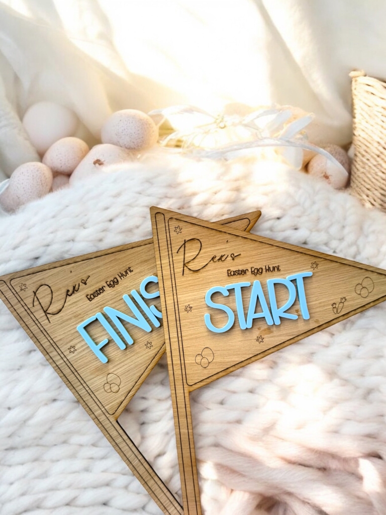 Hop into fun, colourful Easter egg hunts this spring with our engraved Easter Hunt Flags! Choose from a variety of vibrant colours for the 3mm acrylic flag, each with a natural wood 4mm veneer to add a playful touch to your indoor or outdoor celebrations. With this charming set, make your Easter getaway one to remember.