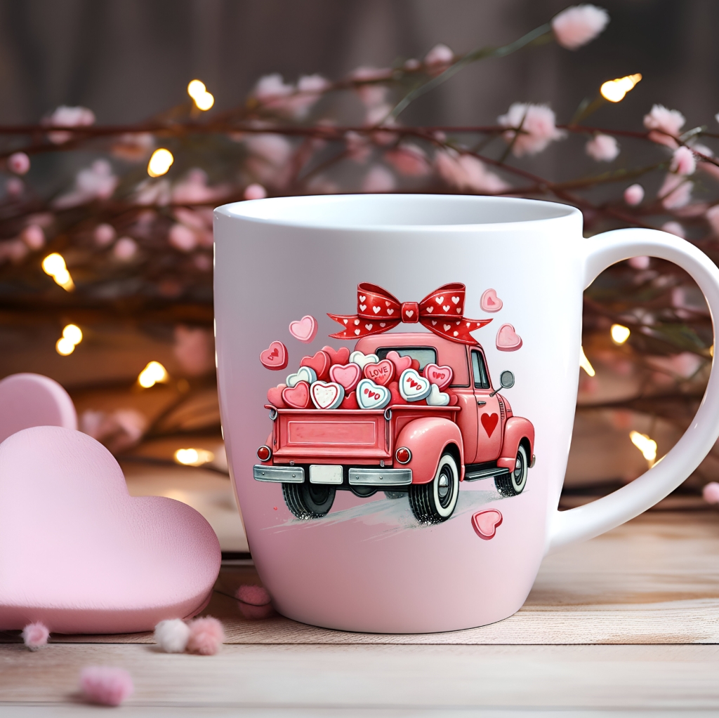 Experience the magic of Valentine's Day with Pick up full of Love UVDTF. This charming retro pick up truck is not only cute, but also durable with a UVDTF transfer that will last for years. Plus, the easy application makes it a hassle-free addition to your holiday decorations. Spread love and joy with this must-have product.