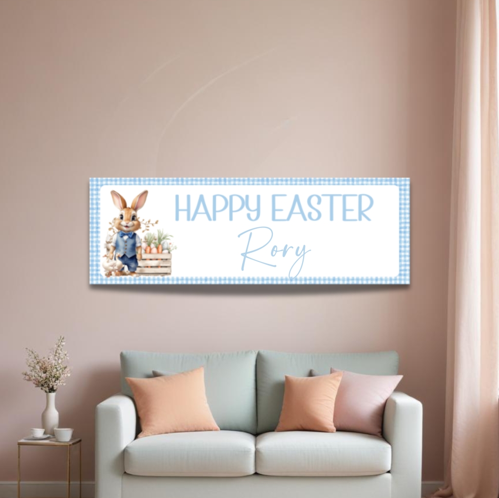 Easter Bunny Happy Easter Banner Blue 60x20cm