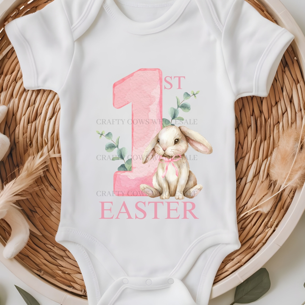 Transform your child's first Easter into a magical and memorable experience with our 1st Easter DTF Transfers! The easy application process means you can spend more time making memories and less time worrying about the transfer. With a durable finish and a simple, cute design featuring an adorable Easter bunny, this DTF transfer is the perfect addition to any Easter celebration. Plus, the beautiful pink colour will surely bring joy to your child's eyes. Order now and make this Easter one to remember!