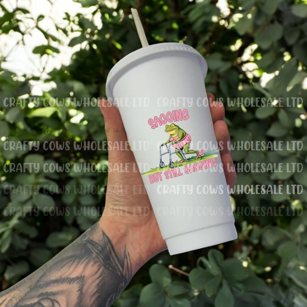 Unleash your creativity with our UVDTF Sagging but still Gagging Decal. Apply it to hard surfaces like plastic, acrylic, glass and wood, and enjoy its durable design, available in sizes 8-15cm. 18+ Only.