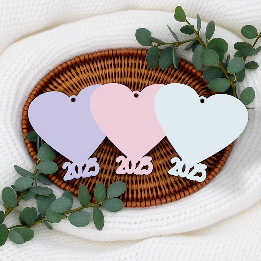 The 2025 Heart Shaped Bauble is available in all of our colours and makes a great base for personalising your Christmas decorations. Its classic heart shape adds warmth to any tree and can be customised easily sublimation, vinyl or UVDTF.