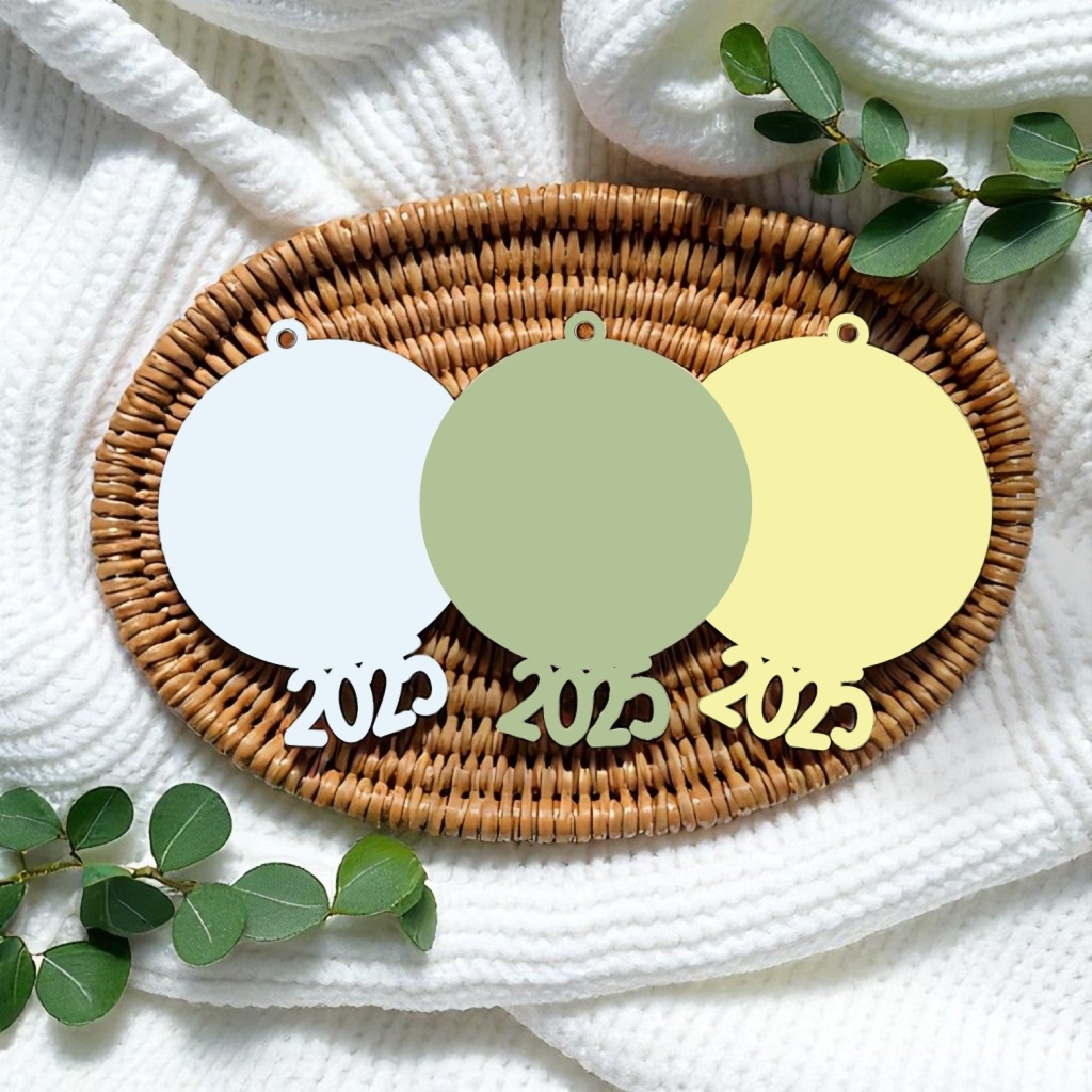 The 2025 Circle Shaped Bauble is available in all of our colours and makes a great base for personalising your Christmas decorations. Its classic circle shape adds warmth to any tree and can be customised easily sublimation, vinyl or UVDTF.