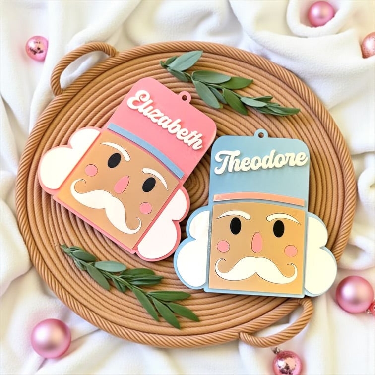 Measuring 120mm x 120mm, this generously sized bauble features a detailed nutcracker face design, perfectly balanced between traditional and modern. The smooth, satin-finish surface and pastel color palette make it ideal for baby’s first Christmas, gifts, or simply for those who love a pastel Christmas aesthetic.