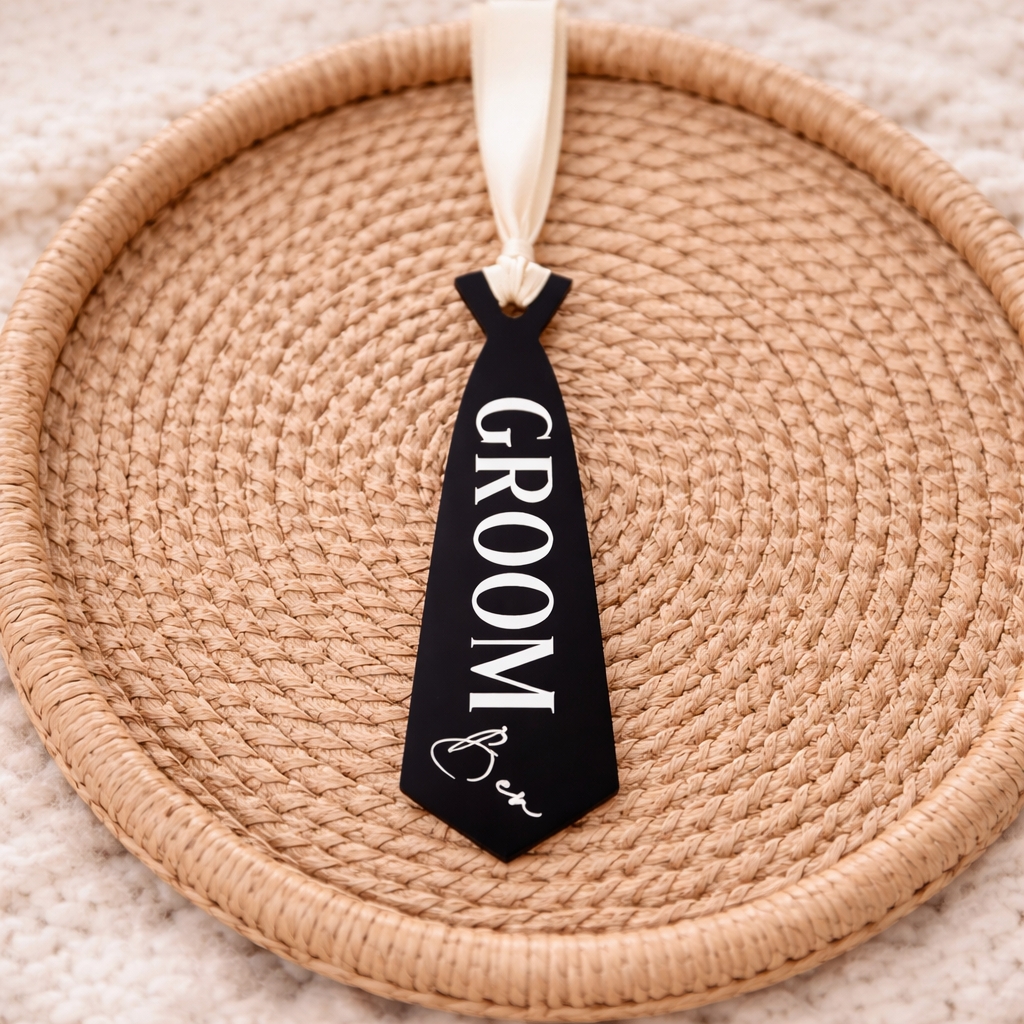Add the perfect finishing touch to your wedding morning details with our 145mm acrylic tie blank.
