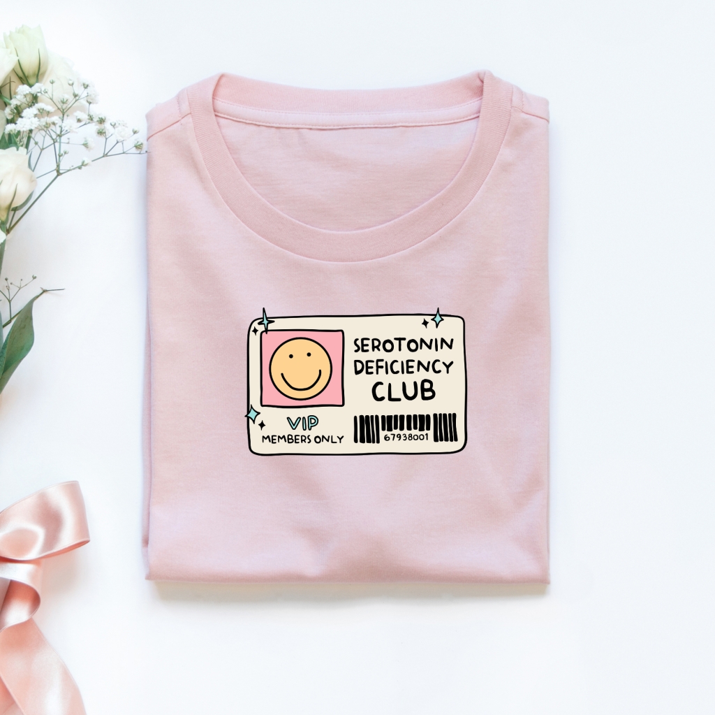 Elevate your closet with our Serotonin Deficiency Club DTF - a transformative addition to your fashion arsenal. Each 15cm transfer print is thoughtfully crafted to awaken optimism and evoke laughter, transforming any garment into a source of happiness and positivity. Let our playful and clever prints not only bring joy to your own life, but also spread the message of mental well-being to others.