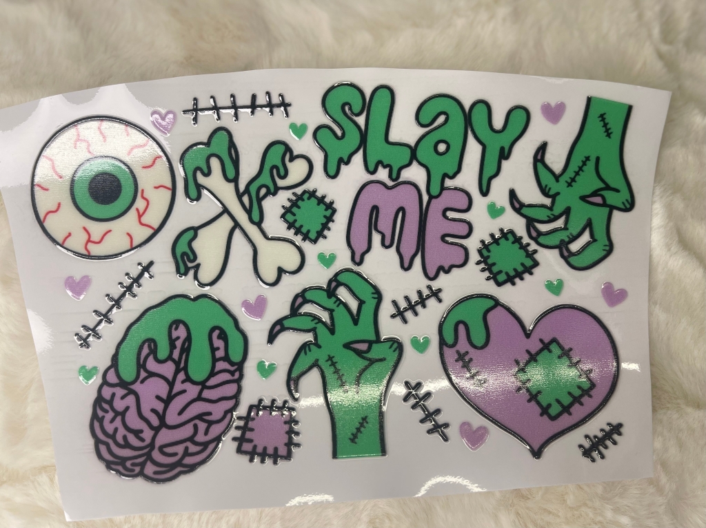 Unleash your inner zombie this Halloween season with this UVDTF wrap! Get ready to slay in vibrant, colourful style with our easy-to-apply and durable wrap. Don't just blend in with the crowd, stand out and make a statement with this must-have accessory!